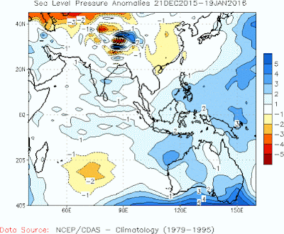 Gambar 2. Anomali Sea Level Pressure 16 Desember 2015 - 13 Januari 2016