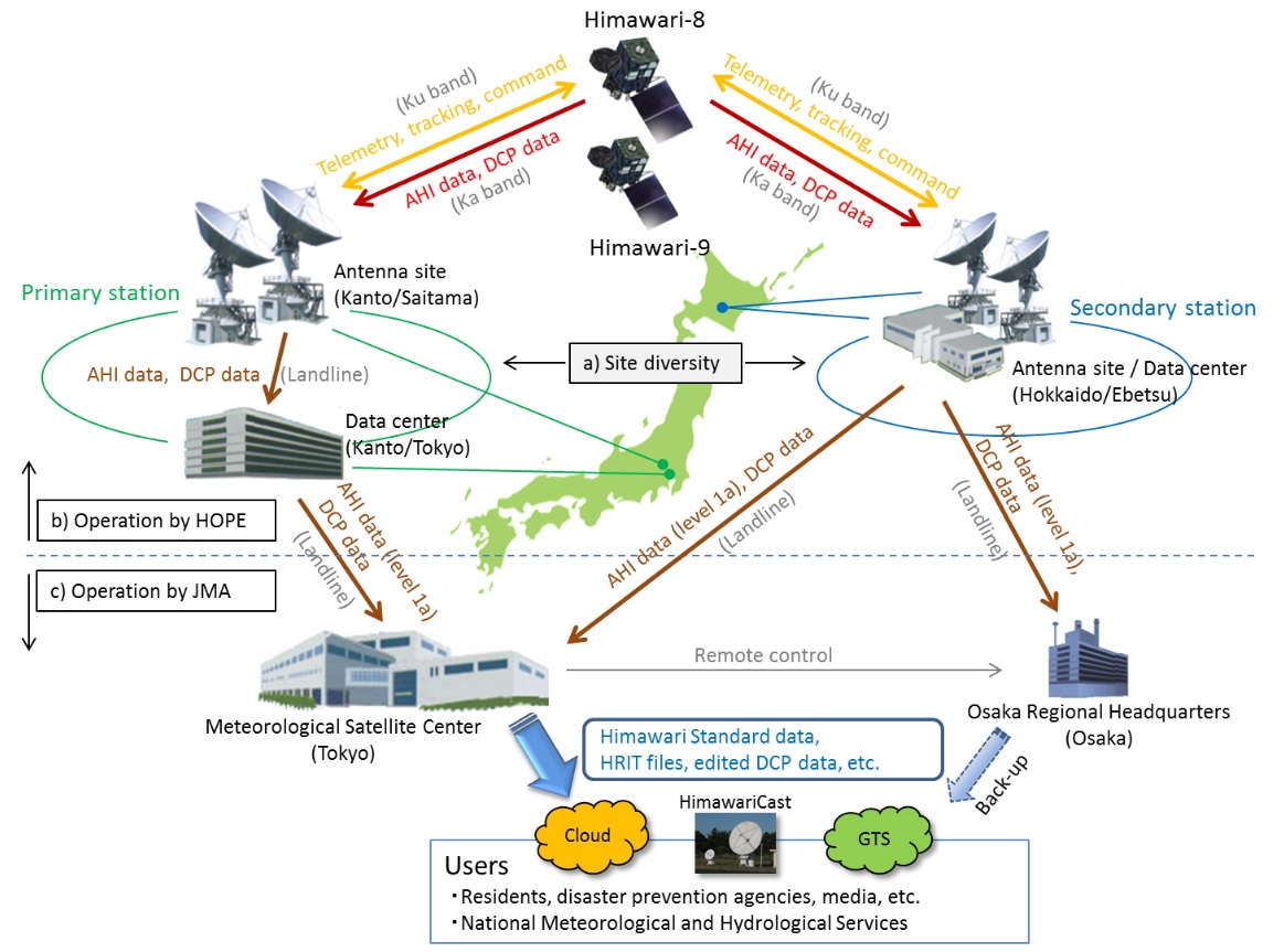 MSC secara rutin menerima data primer dan sekunder dari stasiun bumi untuk diproses dan menggunakan hasil prosesing tersebut untuk membuat standar data Himawari, file-file HRIT dan DCP yang telah diedit untuk pengguna khusus.